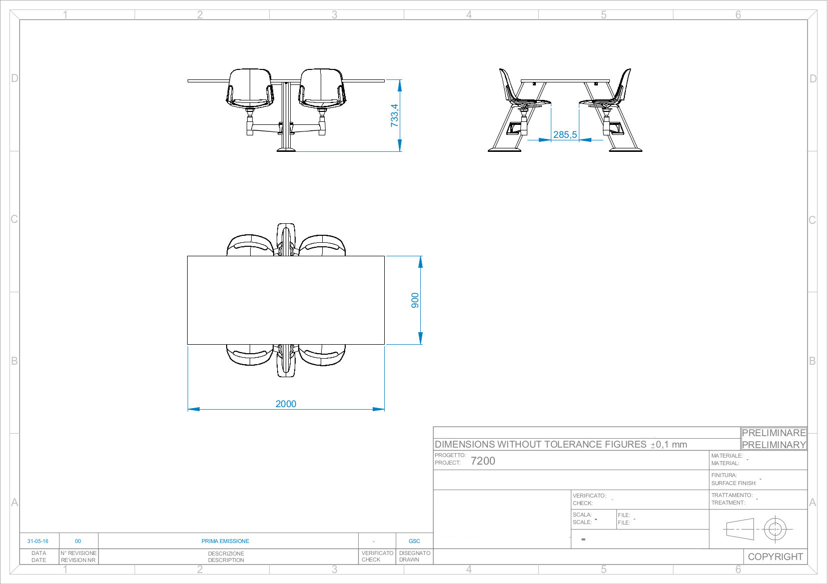 vaste tafel met vaste draaibare stoeltjes. bijzonder geschikt voor congresruimtes, gehoorzalen en lezingruimtes. de ideale oplossing voor een amfitheater.